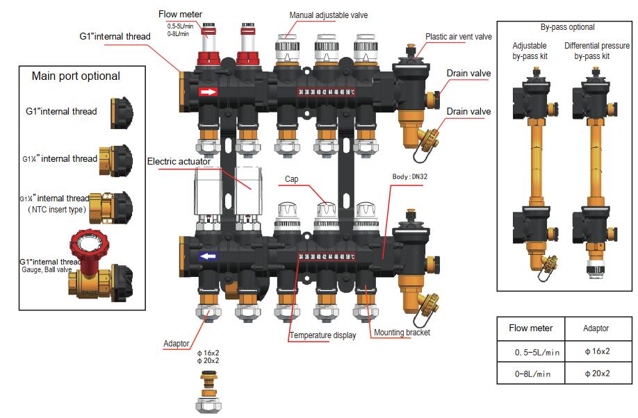 分集水器(Manifold)是一种用于流体分配和收集的装置,广泛应用于供暖、制冷、给排水等系统,主要功能是将水流均匀分配到不同回路或将各回路的水流汇集,提高系统效率和稳定性。