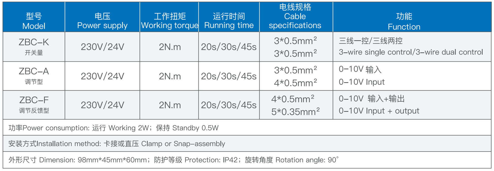 此款角行程电驱动执行器体积小,与阀门安装便捷、快速。 功能:0-10V输入+输出,调节带反馈